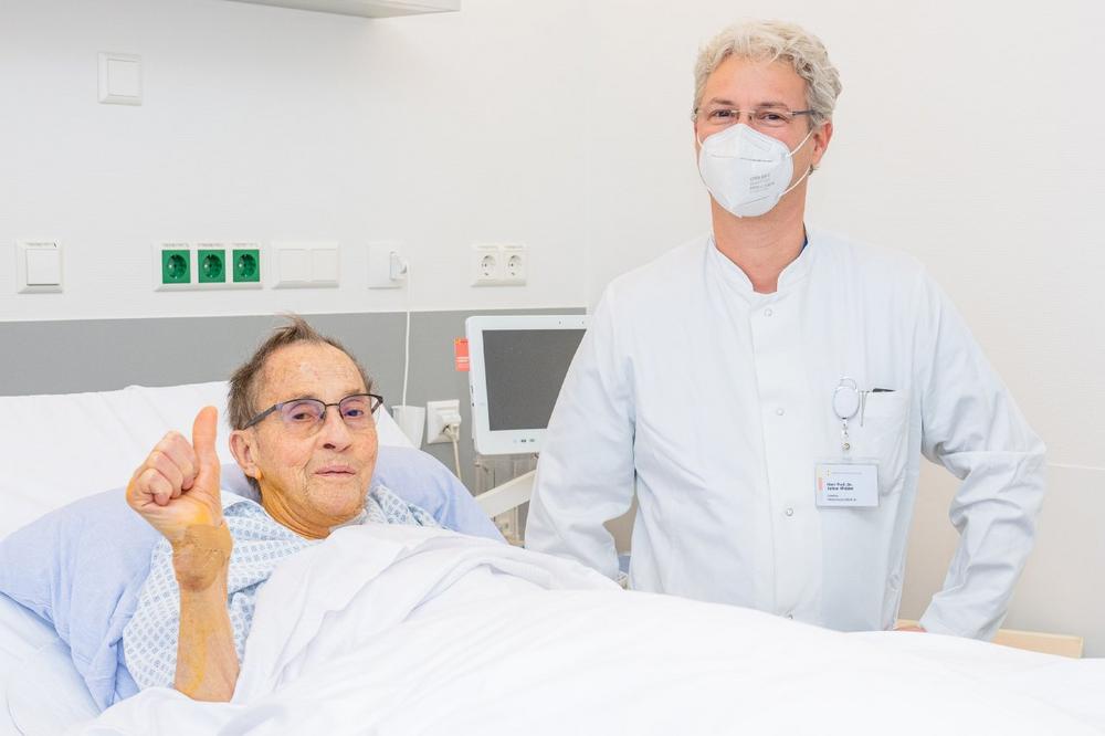 Joachim K. ist als erster Patient im Klinikum Karlsruhe nach der neuen Methode behandelt worden. Der 84-Jährige litt schon länger an schwerer Luftnot, Wasser in den Beinen und auch die Leber und Nieren waren durch seine undichte Klappe schon angegriffen. „Angesichts seines hohen Alters haben wir uns im Herz-Team gemeinsam mit dem Patienten gegen eine Operation der Klappe und für den schonenden Eingriff mit dem TricValve®-System entschieden“, erklärt der Professor. „Im Grunde war dieses neue Verfahren die letzte Option für unseren Patienten, um eine Verbesserung der Herzleistung und seiner Lebensqualität zu erzielen.“