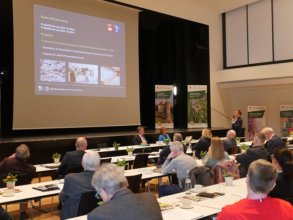 Bevor das Team um Geschäftsführerin Dr. Jutta Weber über die vielfältige Arbeit des GeoNaturparks berichtete, ging es um die Finanzen: Nach den einvernehmlichen Haushaltsberatungen gab es einen Überblick zu Förderprojekten aus allen drei Bundesländern, über die sich der Geo-Naturpark erstreckt. So wurden etwa zwei Bodenprofilstelen erstellt, die die Bedeutung des Bodens für unser Leben vermitteln und eine Vitrine für die umfangreiche Türschel-Fossiliensammlung gebaut. Die hochwertigen Infoterminals für alle Infoeinrichtungen befinden sich derzeit in der Auslieferung.