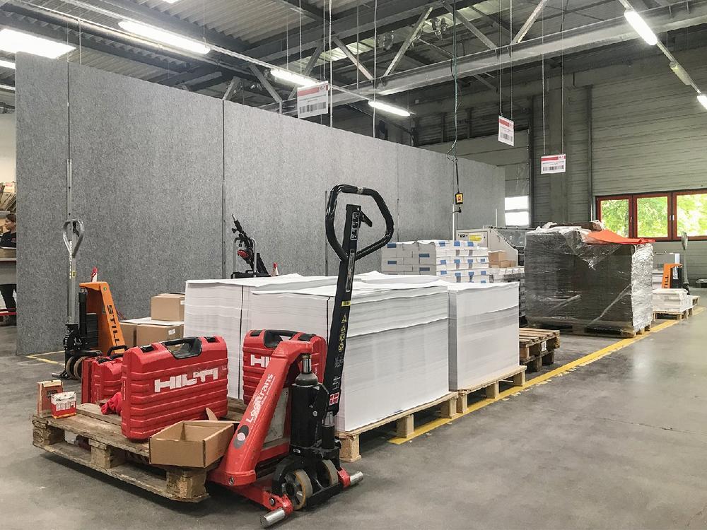 Durch die pure Stellwand Industrie der Firma SONATECH® ist neben einer optischen auch eine akustische Abgrenzung von einem oder mehreren Arbeitsbereichen möglich.