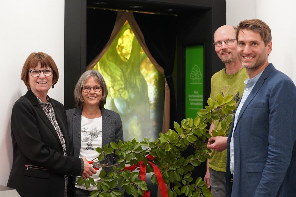Hessens Umweltministerin Priska Hinz eröffnete am heutigen Dienstag während einer Feierstunde die vier neuen Erlebnisrotunden des NationalparkZentrums Kellerwald in Vöhl-Herzhausen. „Die technischen Raffinessen in den Rotunden machen die Lebensräume des Nationalparks intensiv erlebbar – tags, nachts, im Winter oder Sommer, es ist, als sei man immer mittendrin. Betrachtet man die Exponate wie den Steppengrashüpfer, die Pfingstnelke oder den Feuersalamander, erkennt man die Liebe zum Detail bei der Gestaltung der neuen Ausstellung“, sagte Hinz. Die vier Rotunden präsentieren Besonderheiten des Nationalparks: den faszinierenden Verlauf der Jahreszeiten in Alten Buchenwäldern, Felsen und Blockhalden als Lebensraum mit extremen Bedingungen, das sprudelnde Leben der Quellen und Bäche sowie den ewigen Kreislauf der Wildnis. In den Rotunden wird ein Ausschnitt des jeweiligen Lebensraums als erlebbares Diorama dargestellt und durch aufwendig animierte Projektionen belebt. Die Ausstellung zeigt verschiedene Jahreszeiten und den Wechsel zwischen Tag und Nacht. Dies gelingt durch eine technisch ausgefeilte Synchronisation von Projektion, Licht, Audio und anderen, auch haptischen Elementen. „Da steht man richtig gebannt in der Ausstellung und ist gespannt, wo sich als nächstes etwas bewegt“, schildert Nationalparkleiter Manuel Schweiger seinen ersten Besuch. „Mein großer Dank geht an alle Projektbeteiligten mit ihrem unermüdlichen Engagement und einem langen Atem. Was lange währt, wird endlich gut“, resümiert Schweiger mit dem Hinweis auf die fünfjährige Planungs- und Umsetzungszeit des Relaunchs, der neben den Erlebnisrotunden auch den bereits abgeschlossenen Komplettumbau des Kinosaals samt aufwendiger Technik beinhaltet. Auch die rund einjährigen Dreharbeiten sowie die Produktion des 3D-Films zählen zum Gesamtprojekt, welches mit der heutigen Eröffnung erfolgreich beendet wird. An der Ausgestaltung der neuen Erlebnisrotunden hat sich auch der Förderverein für den Nationalpark Kellerwald-Edersee e.V. mit elf Präparaten im Wert von rund 3.400 Euro beteiligt. Besucherinnen und Besucher können diese großen und kleinen Bewohner der Nationalparklebensräume während der derzeit täglichen Öffnungszeit von 10 bis 18 Uhr mit aufmerksamem Blick in den Dioramen entdecken.