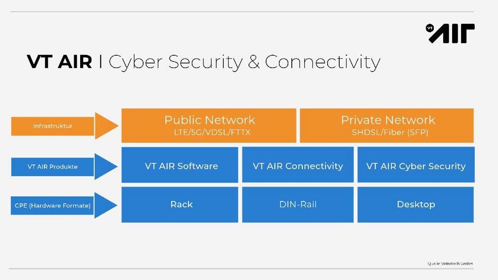• VT AIR bietet sichere Vernetzung dank vielfältiger VPN-Optionen (IPSec, OpenVPN, WireGuard).