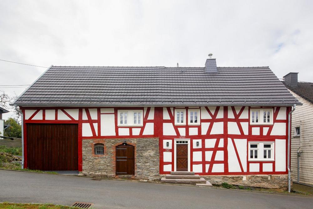 Beim Rückbau im Jahr 2020 wurde das Gebäude fast komplett auseinandergenommen. Nach der Untersuchung mehrerer Holzproben stand das Alter der verbauten mächtigen Eichenbalkenträger fest, und daraus wurde das wahrscheinliche Baujahr rekonstruiert: 1707. Etwa zwanzig Prozent der Balken waren so morsch, dass die Zimmerleute sie durch neue ersetzen mussten. Die Fachwerkkonstruktion des Gesamtgebäudes wurde in einzelnen Abschnitten überprüft, saniert und in Teilbereichen erneuert, alte Holzoberflächen wurden gereinigt und für den Neuanstrich vorbereitet, vorhandene Gefache – die Räume zwischen den Holzbalken, daher stammt der Begriff „Fachwerk“ – überprüft und innen- und außenseitig mit Lehmputz ergänzt oder neu aufgetragen. Zum Glück gibt es im fachwerkreichen Westerwald noch Firmen, die sich mit der Herstellung dieser Ausfachung auskennen. Die Dachpfannen, noch relativ neu, brauchten lediglich auf einer Seite ergänzt zu werden.