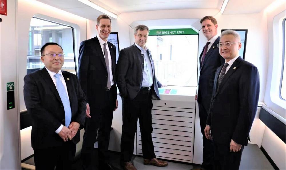 Seit 2020 betreibt die Firmengruppe Max Bögl zusammen mit ihrem chinesischen Partner SDH / Xinzhu eine 3,5 Kilometer lange Magnetbahnstrecke des TSB in Chengdu. Nachdem Ministerpräsident Dr. Markus Söder Ende letzten Jahres die Strecke am Hauptstandort in Sengenthal besucht hatte, machte er sich nun ein Bild von der chinesischen Variante. Bei einer Mitfahrt konnte er sich vom hohen Fahrkomfort überzeugen und bei einer Vorbeifahrt am Bahnsteig von den geringen Lärmemissionen auch bei höheren Geschwindigkeiten.