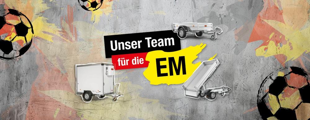 Die Vorfreude auf die EM ist groß. Die Auswahl der Mannschaft wurde aus der Vielzahl großartiger Anhänger, die das Unternehmen im PKW-Anhänger Segment auf dem Markt hat, zusammengestellt. Hierbei wurde darauf geachtet, für viele Anlässe ein passendes Modell auszuwählen.