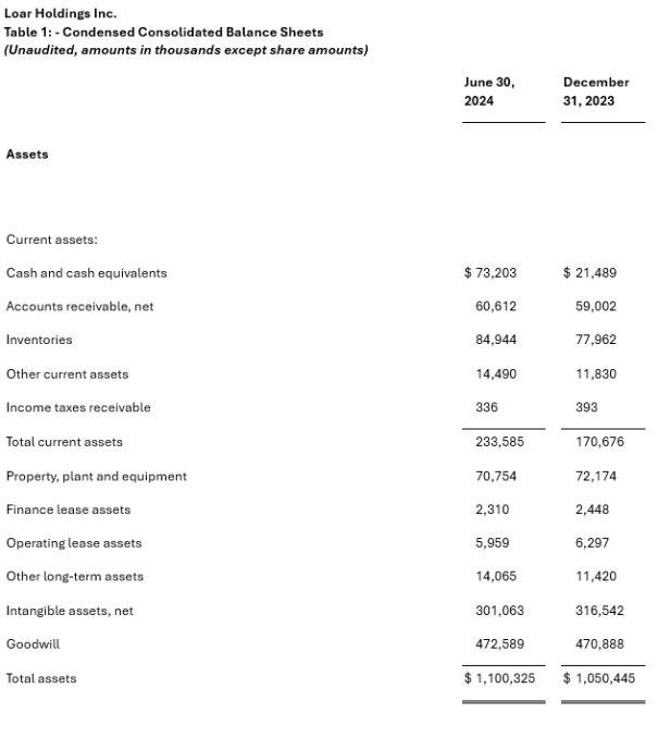 Loar meldete für das Quartal einen Nettoumsatz von 97,0 Mio. $, was einem Anstieg von 23,0 Mio. $ oder 31,1 % gegenüber dem Vorjahr entspricht. Organisch(1) stieg der Nettoumsatz um 17,0 % bzw. 12,6 Mio. $ auf 86,6 Mio. $.