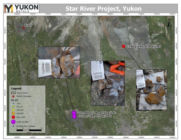 Yukon Metals besitzt 100 % der Anteile am Basis- und Edelmetallprojekt Star River, das über den Straßenweg vom Robert Campbell Highway und der Transportstraße der ehemaligen Mine Ketza erreichbar ist. Das Projektgebiet beherbergt zahlreiche Vorkommen an polymetallischer Karbonat-Verdrängungsmineralisierung und Quarz-Sulfid-Adern, die in den 1950ern erstmalig entdeckt wurden (Abbildung 5). Überreste von Untertage- und Übertageabbaubetrieben, die mit historischen Explorationstechniken durchgeführt wurden, sind auf einem Großteil des Konzessionsgebiets sichtbar und mit dem zuvor etablierten Zugang von der Straße der Mine Ketza verbunden.