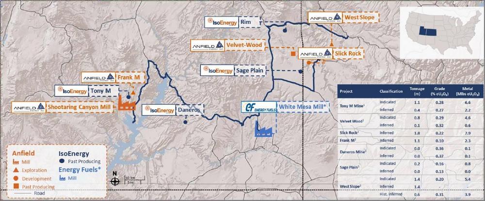 CEO and Director of IsoEnergy, Philip Williams, commented, “IsoEnergy is committed to becoming a globally significant, multi-asset uranium producer in the world’s top uranium mining jurisdictions. The U.S. is a key jurisdiction for us, and we believe today’s acquisition of Anfield strengthens both our resource base and near-term production potential. The combined uranium mineral endowment will rank as one of the largest in the U.S., supported by a 100% owned processing facility, multiple fully permitted mines ready for rapid restart, and a strong pipeline of longer-term development projects.