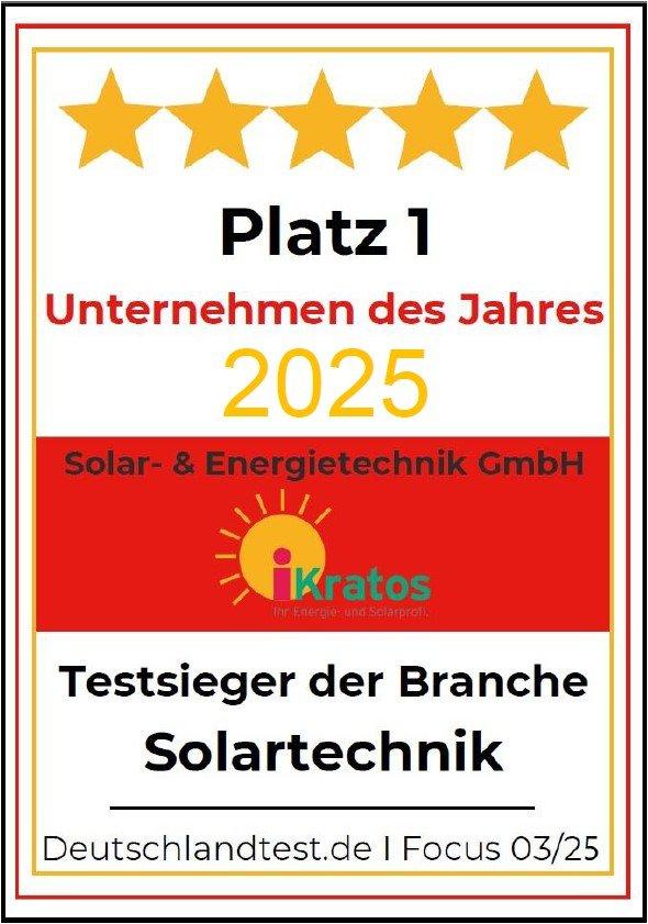 Die iKratos Solar- und Energietechnik GmbH aus Weißenohe bei Nürnberg wurde von Focus Money zum vierten Mal als „Unternehmen des Jahres“ ausgezeichnet. Die Studie „Unternehmen des Jahres 2025“ würdigt Unternehmen, die in den Studien „Preissieger 2024“, „Höchstes Vertrauen 2024“, „Kundenlieblinge 2024“ und „Deutschlands Beste – Nachhaltigkeit 2024“ besonders gut abgeschnitten haben. Die wiederholte Auszeichnung ist ein Zeichen der Kontinuität, die auch im Unternehmen iKratos als permanente Zielsetzung gilt.