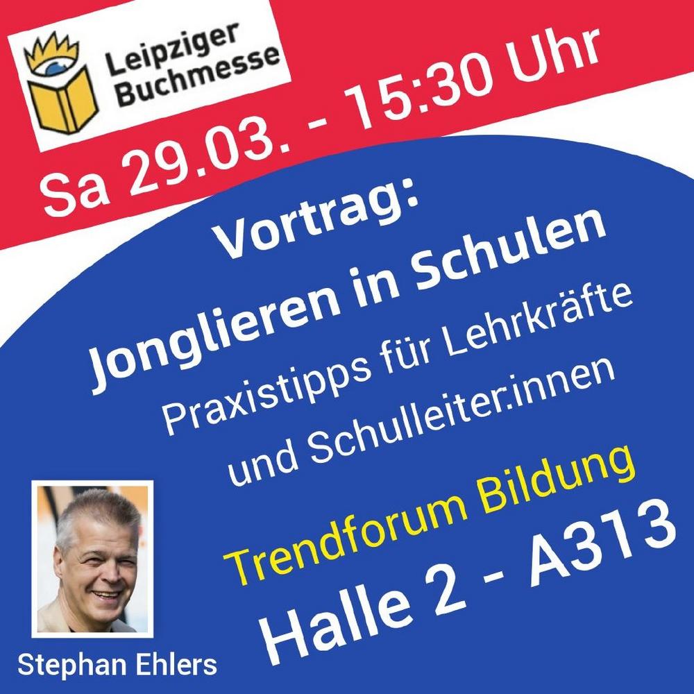 Stephan Ehlers finden Sie vor und nach seinem Vortrag am Stand "Gehirn-Wissen & Jonglieren" in Halle 2, Stand D101.