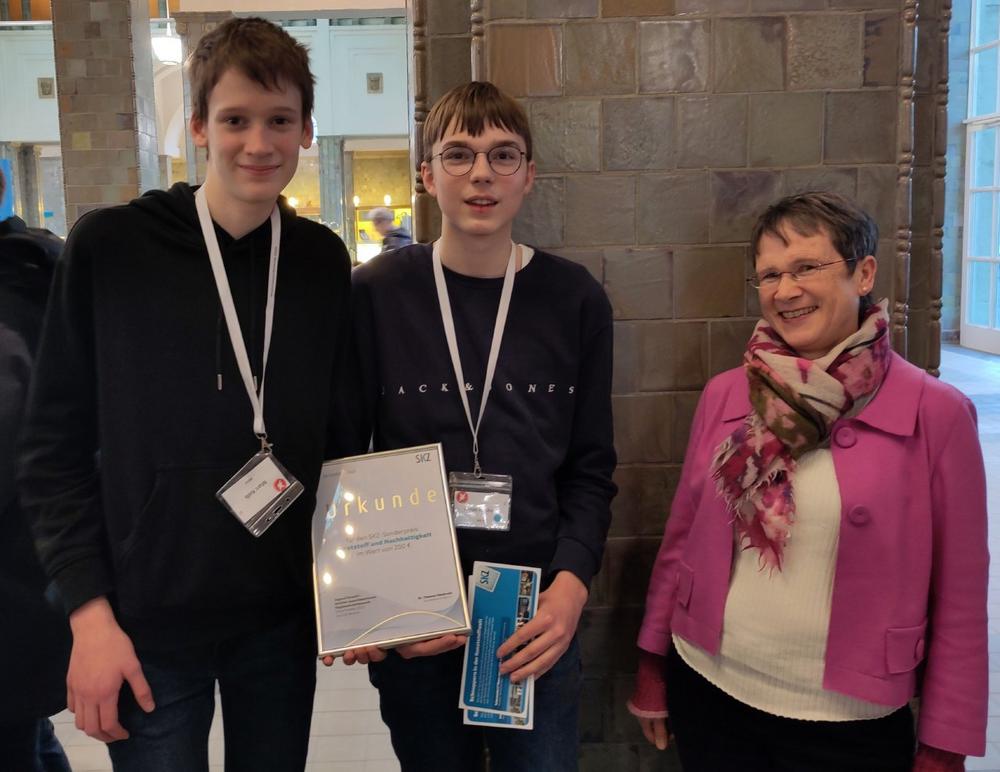 Das Kunststoff-Zentrum SKZ unterstützt als Preisstifter im Wettbewerb „Jugend forscht die MINT-Bildung und freut sich sehr, auch in diesem Jahr wieder ein spannendes Forschungsprojekt – „Umweltretter auf sechs Beinen“ von Jonas Kirchner und Marc Kolb vom Kronberg-Gymnasium Aschaffenburg – mit dem Sonderpreis für Kunststoff und Nachhaltigkeit auszeichnen zu können.