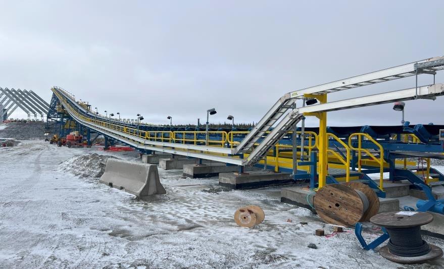 - Die Förderanlagen stehen kurz vor der Fertigstellung, die Gurtbänder sind fertiggestellt und die Vorinbetriebnahme ist im Gange;