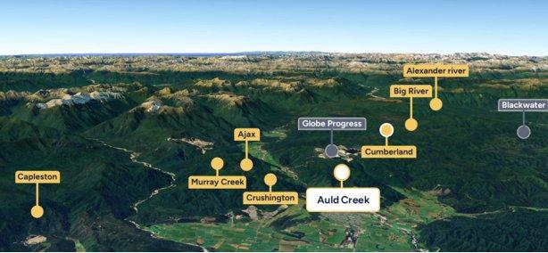 Das Unternehmen kontrolliert den Reefton-Goldbezirk als dominierender Landbesitzer im Goldfeld Reefton auf der Südinsel Neuseelands mit über 120.000 Hektar Grundbesitz in einem Bezirk, in dem in der Vergangenheit über 2 Millionen Unzen Gold bei Gehalten zwischen 9 und 50 g/t gefördert wurden.