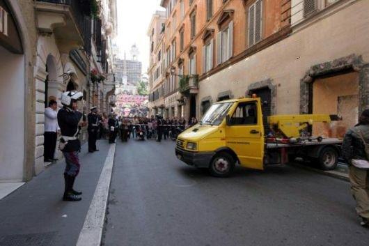 3. Mai. Via Condotti, Rom. Auf dem berühmten ShoppingCatwalk mit all den Edeldesignern und Luxusjuwelieren, direkt an der Spanischen Treppe ist helllichter Tag, die Sonne scheint, und nichts deutet darauf hin, was jetzt kommt.