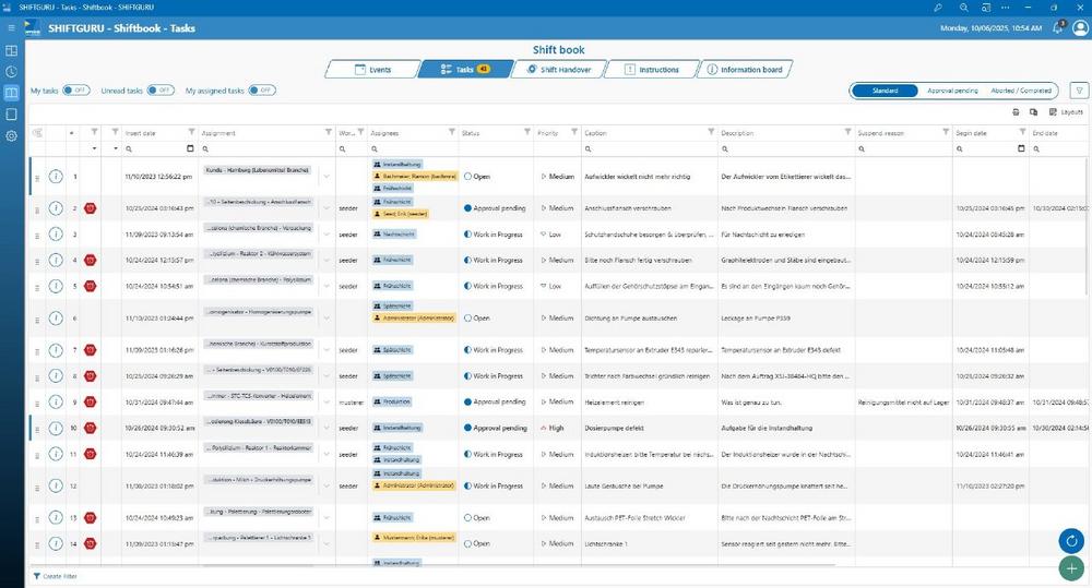 SHIFTGURU improves and facilitates communication and documentation in shift operations by providing outstanding user-friendliness and the best possible support for users in their daily workflows. Paperless working in all areas of production, maintenance and warehouse management guarantees error-free, complete recording of all shift events.