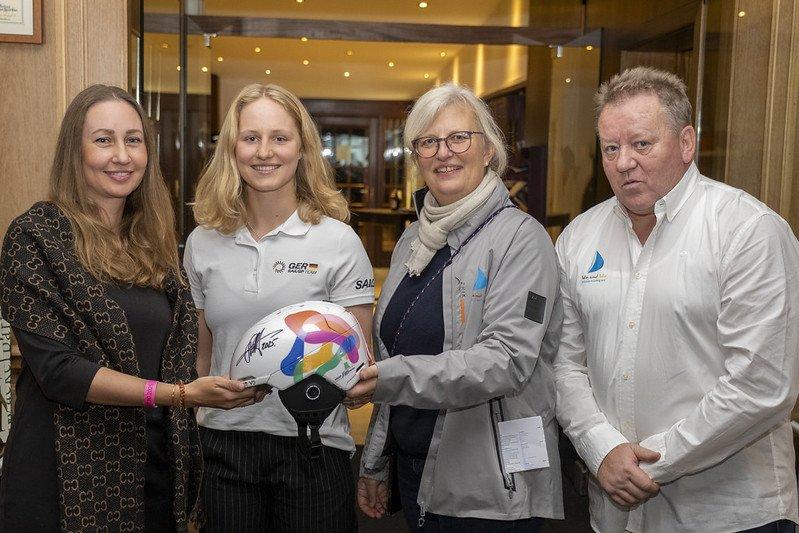 Ein emotionaler Höhepunkt des Abends war die Übergabe des signierten Helms von Sebastian Vettel, den der viermalige Formel-1-Weltmeister beim SailGP-Event in Sassnitz getragen hatte. Das Germany SailGP Team hatte den Helm zugunsten inklusiver Segelprojekte versteigert. Anna Barth vom Germany SailGP Team übergab gemeinsam mit Claudia Langenhan und Clemens Kraus von "Wir sind Wir Inclusion in Sailing" den Helm persönlich an Theresa Böttger von Karma Capital, die mit ihrem Gebot von über 7.000 Euro die Kinder- und Jugendprojekte von "Wir sind Wir Inclusion in Sailing" unterstützt.