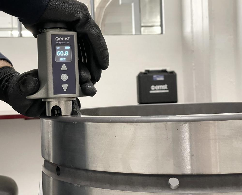 Das mobile Härteprüfgerät eignet sich ideal für den Einsatz an großen und schwer zugänglichen Bauteilen, wie sie beispielsweise in der Stahl- und Anlagenfertigung vorkommen. Es ermöglicht exakte Härtemessungen direkt an Rohren, massiven Formteilen oder Maschinenkomponenten – ganz ohne Probenentnahme oder aufwändiges Bauteilhandling. Dadurch kann die Qualitätskontrolle unmittelbar in der Fertigungslinie erfolgen, was Zeit spart und Produktionsprozesse effizienter gestaltet.