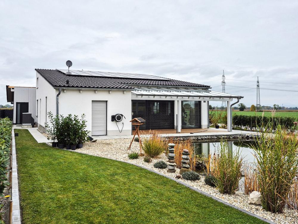 Der Bungalow in Tabertshausen mit einer Grundfläche von rund 100 m² bietet neben dem Wohnbereich für zwei Personen unter dem Dach auch Platz für ein kleines Büro. Um sich für die Zukunft aufzustellen, wünschte sich der Bauherr eine umweltfreundliche und von fossilen Brennstoffen unabhängige Wärmeversorgung. Dafür kamen Wärmepumpe und ‑speicher sowie Flächenheizung/-kühlung von KERMI zum Einsatz. Zusätzlich wurde in dem Neubau (KfW-Effizienzhaus 40) eine zentrale Wohnraumlüftung installiert – für ein optimales Raumklima aus einer Hand.