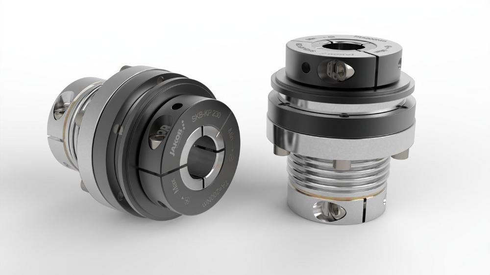 The tried-and-tested SKB-KP series safety coupling has been used for decades to provide mechanical protection for drive units. It has already proven its effectiveness in hundreds of applications, especially when used as collision protection in the feed axes of machine tools. As a combination of a metal bellows servo coupling and the unique JAKOB safety mechanism, the SKB-KP series is flexible, free of play, compensates for misalignment, has a low moment of inertia and high torsional stiffness. In this way, precise transmission of the torque can be guaranteed. By using clamping sets, the torque setting range could again be significantly increased, so clamping forces of up to 9000 Nm can be safely achieved.