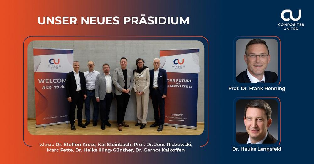 Composites United e.V. (CU) ist eines der weltweit größten Netzwerke für faserbasierten multimaterialen Leichtbau. Rund 350 Mitglieder haben sich zu diesem leistungsstarken Industrie- und Forschungsverbund zusammengeschlossen. Mehrere Regional- und Fachabteilungen tragen die Vereinsaktivitäten in der gesamten DACH-Region, dazu kommen internationale Vertretungen in Japan, Südkorea, China und Indien.