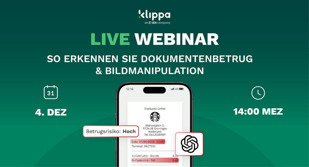 Angesichts dieser Entwicklung bringt Klippa das erfolgreiche KI-Betrugs-Webinar zurück – diesmal komplett auf Deutsch. Am 4. Dezember 2025 um 14:00 Uhr (MEZ) zeigen Klippas Experten live, wie KI-Betrug in der Praxis funktioniert und wie Unternehmen sich davor schützen können. Teilnehmende erfahren: Wie manipulierte Bilder, Belege oder Ausweise mithilfe von KI entstehen, welche Prüfmethoden, von Photoshop-Erkennung bis GenAI-Analyse, tatsächlich funktionieren und wie Klippa DocHorizon gefälschte Dokumente in Echtzeit identifiziert.