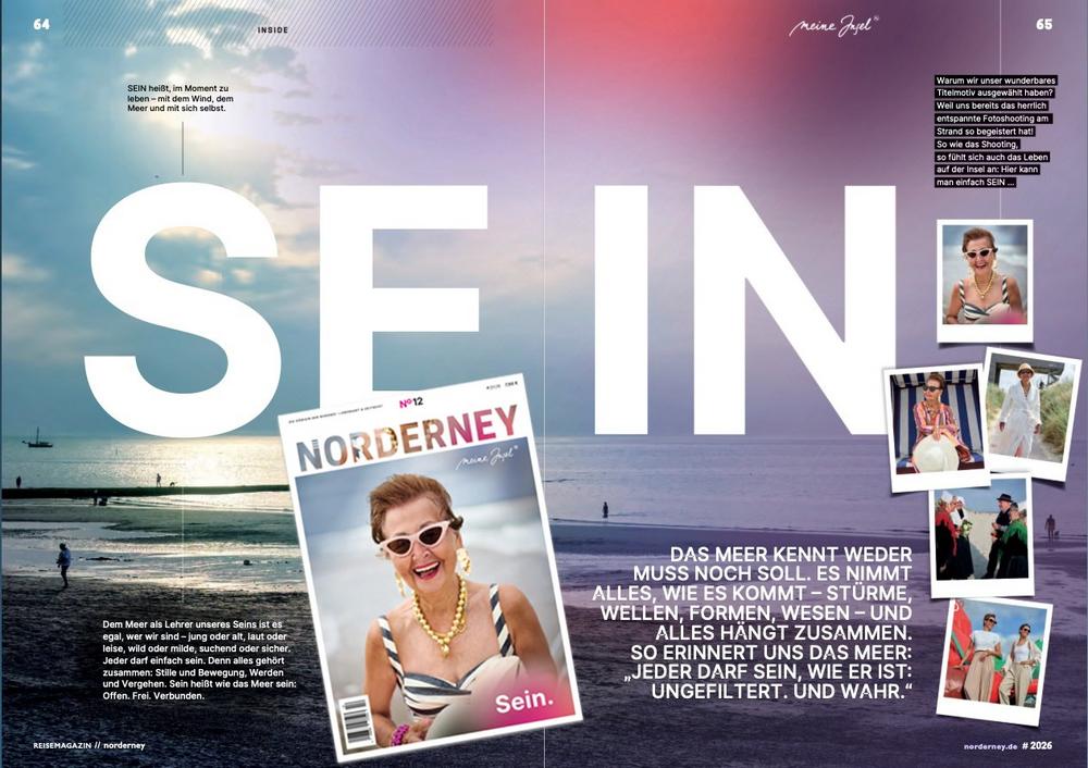 Über 26 Quadratkilometer feinster Nordseesand bieten unzählige Möglichkeiten, Perspektiven und Entdeckungen. Genau diesem Gefühl des bewussten Daseins widmet sich die neue Ausgabe. Viele Beiträge sensibilisieren dafür, im Moment zu leben – mit dem Wind, mit dem Meer und mit sich selbst. „Sein“ beschreibt den Zustand des Daseins, des Existierens und des authentischen Lebens im Einklang mit der Natur und der inneren Wirklichkeit. Es steht für das Streben danach, so zu sein, wie man wirklich ist.