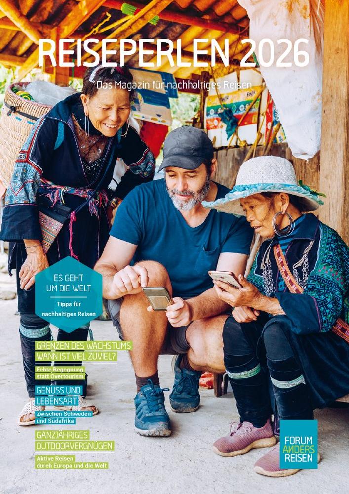Zum sechsten Mal präsentiert das Reiseperlen-Magazin inspirierende Geschichten und handverlesene Reiseideen, die zeigen, wie nachhaltiges Reisen mit Respekt vor Mensch, Kultur und Natur gelingt. Das Magazin richtet sich an alle, die achtsam reisen und authentische Begegnungen suchen. Drei Leitartikel beleuchten die zentralen Fragen unserer Zeit: Wie gelingt Reisen im Einklang mit den ökologischen Grenzen? Wo sind die Grenzen des Wachstums? Wie schützen Reisen die Natur? Wie können wir Mobilität anders denken? Und welche Rolle hat der Tourismus als positive Kraft für den Wandel?