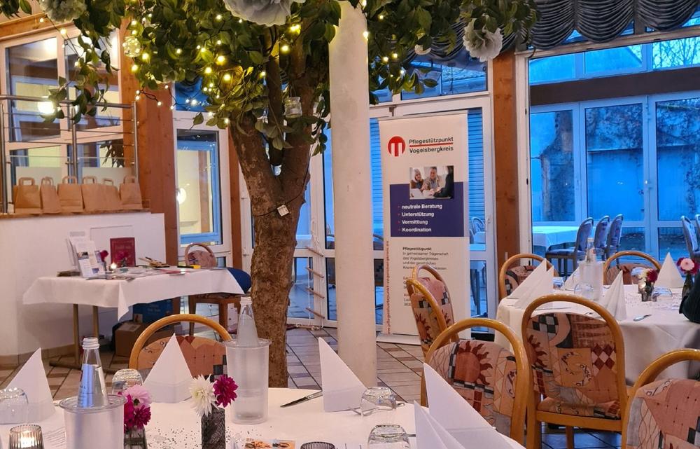 „Alle Plätze waren ausgebucht, das zeigt uns, wie sehr dieses Angebot nachgefragt ist“, ergänzt Sonja Reichel und Marcelina Vorwerk weist darauf hin, dass sich bei der Pause vom Pflegealltag ganz unterschiedliche Teilnehmer treffen und miteinander ins Gespräch kommen. So auch diesmal im Wintergarten des Gasthauses Graulich, der mit Blumen und Kerzen eine heimelige Atmosphäre bot. Der Pflegestützpunkt hatte wieder umfangreiches Informationsmaterial mitgebracht und präsentierte Hilfsmittel zum Ansehen und Ausprobieren. Erneut war Elke Saller mit von der Partie, machte Musik am Marimbaphone und der Steel-Trommel.