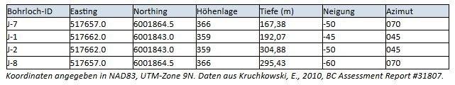 • Bohrloch J-1: 103,65 m mit 1,00 g/t Au und 0,55 % Cu (von 9,15 m bis 112,80 m)