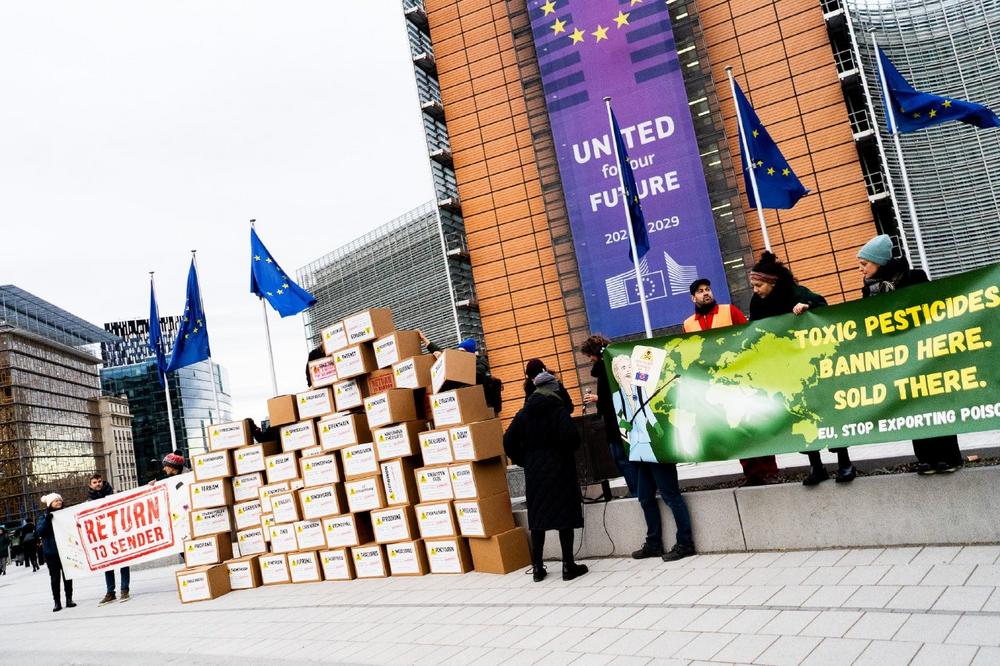 In den Tagen vor der Aktion filmten sich Organisationen aus 13 Ländern und fünf Kontinenten dabei, wie sie Behälter dieser in der EU verbotenen Pestizide in Kartons verpacken und sie an die Europäische Kommission adressieren – als globaler Akt des Widerstands gegen die schädlichen Exportpraktiken Europas. [3]