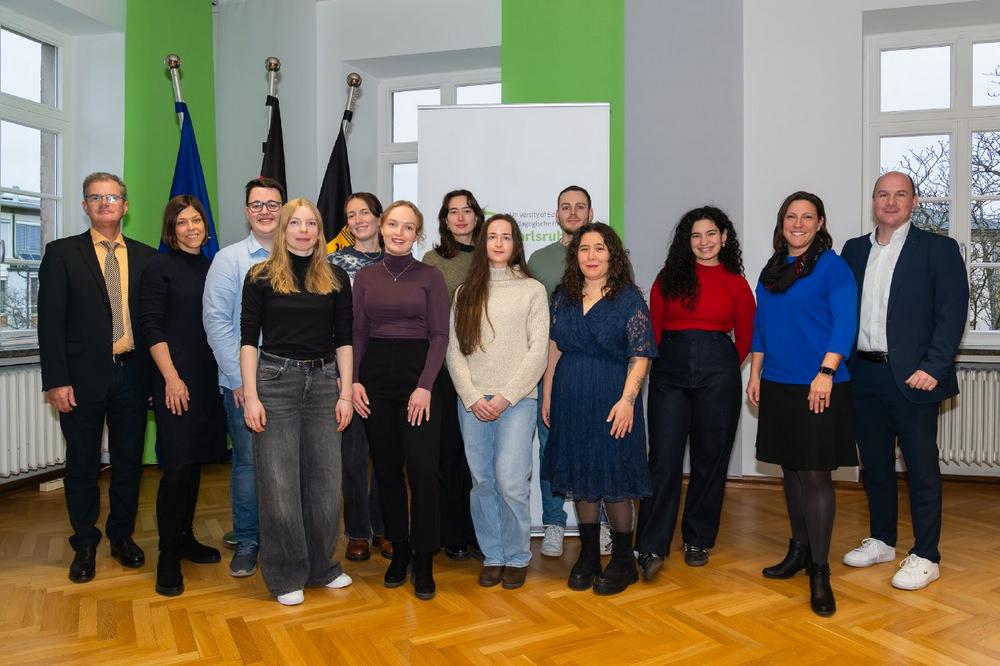 Rund 300 Hochschulen bundesweit bieten das Deutschlandstipendium an. Auch der Pädagogischen Hochschule Karlsruhe (PHKA) ist die Förderung talentierter und gesellschaftlich engagierter Studentinnen und Studenten wichtig. Aktuell profitieren 14 PHKA-Studierende mit sehr guten Noten von den 300 Euro, die monatlich zur einen Hälfte vom Bund, zur anderen Hälfte von Unternehmen oder Stiftungen aus der jeweiligen Region getragen werden. Gestern kamen die PHKA-Stipendiat:innen des Förderzeitraums 2025/26 an die Hochschule, um ihre Urkunden entgegenzunehmen und ihrer Förderer kennenzulernen. Jeweils sechs Studierende werden von der Vector Stiftung und der BBBank Stiftung unterstützt, die Sparkasse Karlsruhe und die Heinrich-Hertz-Gesellschaft fördern jeweils eine Studentin.