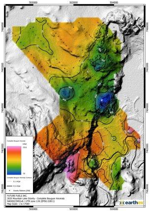 Die Untersuchung wurde von EarthEx Geophysical Solutions Inc. (EarthEx) durchgeführt und stellt den detailliertesten Gravitationsdatensatz dar, der jemals im Urangebiet Hornby Basin erhoben wurde. Das Programm konnte mehrere hochprioritäre Gravitationsanomalien erfolgreich abgrenzen, die räumlich mit wichtigen strukturellen Korridoren, stratigraphischen Grenzen und bekannten Uranmineralisierungen in Verbindung stehen, wodurch Future Fuels ein deutlich besseres Verständnis der Dichtearchitektur des Untergrunds im Gebiet Mountain Lake gewonnen hat.