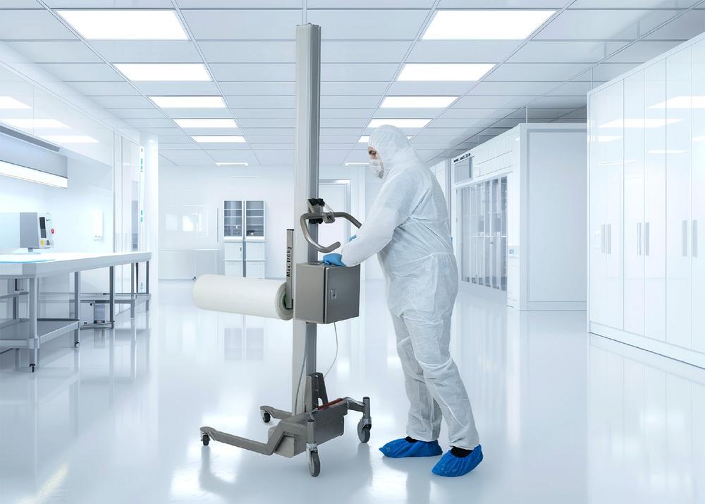 Halbleiter und Isolatoren, mechatronische und feinmechanische Präzisionsbauteile, sensible Optiken und viele messtechnische Komponenten lassen sich ohne die Einhaltung strenger Reinheits-Richtlinien nicht qualitätssicher fertigen. Viele Hersteller dieser Branchen haben daher innerhalb ihrer Betriebsgebäude geschlossene Bereiche eingerichtet, deren Ausstattung verschiedenen Reinraumklassen nach ISO 14644 entsprechen. Sobald es aber darum geht, in diesen Räumen effiziente Materialflusswege einzurichten, zeigt sich immer wieder das gleiche Problem: Je höher ein Reinraum klassifiziert ist, desto weniger dafür geeignete Hebezeuge, Transportmittel und Fördersysteme bietet der Markt. Als Ausweg aus diesem Dilemma präsentiert der deutsche Intralogistik-Spezialist EXPRESSO nun sein erstes reinraumfähiges Hebe- und Transportsystem: Den lift2move cleanroom, ein mobiles Vorschubgerät mit elektrisch angetriebenem Hubmast, das die Bedingungen der Reinraumklasse 5 nach ISO 14644-1 erfüllt. Als Nachweis dafür erhielt der neue Hebelift vor wenigen Tagen die entsprechende Zertifizierung durch das Fraunhofer Institut für Produktionstechnik und Automatisierung (IPA). „Mit dieser ISO 14644-zertifizierten Neuentwicklung erweitern wir unsere lift2move-Modellreihe mit einer hebe- und transporttechnischen Speziallösung, die vielen Herstellern von elektronischen, mikroelektronischen und optischen Bauteilen das Leben leichter macht“, sagt Oliver Stauch-Vaupel, der den Geschäftsbereich Angetriebene Handhabungs- und Transportgeräte bei EXPRESSO leitet.