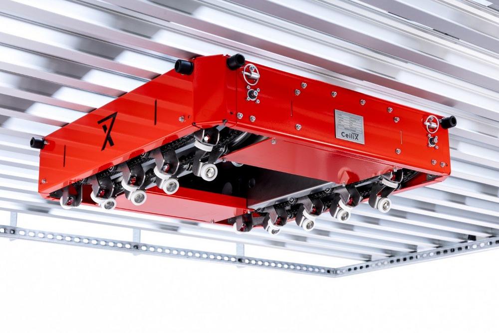 CeiliX is a high-tech company based in Euskirchen that enables industrial automation at the ceiling level of production halls. Its multi-patented technology opens up the ceiling as an additional level of movement and allows omnidirectional motion of overhead vehicles as well as the use of robotic and tool attachments above head level. This makes it possible to implement automation even in environments shaped by complex spatial geometries, floor layouts, or columns.