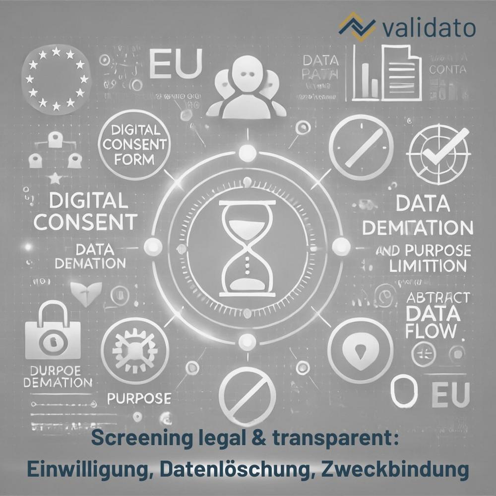 Validato löst diese Herausforderungen mit standardisierten Consent-Flows, europäischen Datenräumen, automatischen Löschmechanismen und vollständigen Audit-Trails. Jeder Screening-Schritt wird nachvollziehbar dokumentiert – von der Einwilligung über die Datenverarbeitung bis zur finalen Löschung.