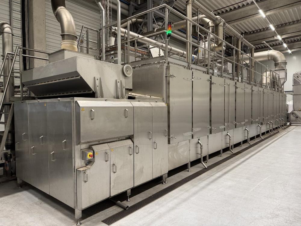 Im Frühjahr 2025 waren die Bauarbeiten an der Halle in der Halle so weit gediehen, dass die großen Teile der neuen Produktionsanlage pünktlich und wie geplant an den vorbereiteten Aufstellort geliefert werden konnten. Noch während der letzten baulichen Arbeiten an der Produktionshalle begann die APV Projekt GmbH mit dem Aufbau der Produktionslinie, bestehend aus Rohwarenannahme, Reinigung, Sortierung, Förderung, Röstung und noch einer Förderung.