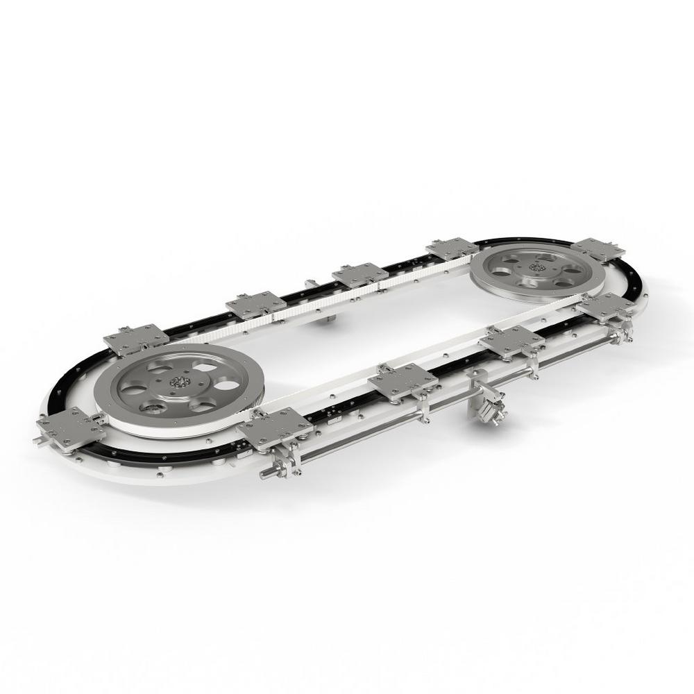 Das neue Ringsystem ermöglicht ovale und rechteckige Bewegungsbahnen mit standardisierten Komponenten, die sich ohne spezielle Bearbeitung und ohne aufwendige Montageschritte kombinieren lassen. Herzstück ist eine dreistufige Basis, auf der die Riemenscheiben und der Riemen montiert sind und die eine stabile, steife Grundlage bildet. Diese Architektur sorgt für eine hohe strukturelle Integrität und erlaubt es den Anwendern gleichzeitig, das System einfach zu konfigurieren.