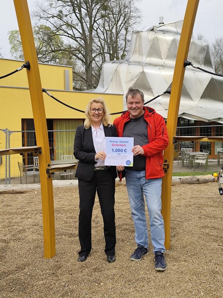 Stellvertretend für die Stiftung übergab Stiftungsbotschafter Martin Prust, Hausbauberater bei der Massivhaus Meyer GmbH & Co. KG, die Urkunde und würdigte das Engagement vor Ort: