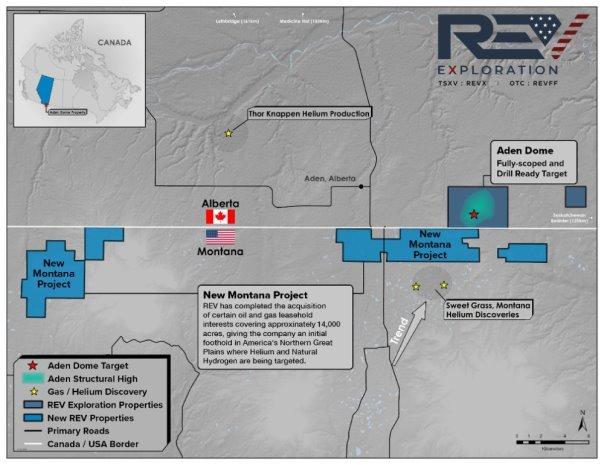 Diese Transaktion markiert den Einstieg von REV in die heliumproduzierenden Northern Great Plains der USA und vervierfacht nahezu die Größe des Explorationsgebiets von REV (jetzt ~19.000 Acres), zu dem auch der Aden Dome entlang der Grenze zwischen Alberta und Montana gehört, ein fortgeschrittenes, bohrbereites Zielgebiet mit Potenzial für Helium- und Naturwasserstofffunde.