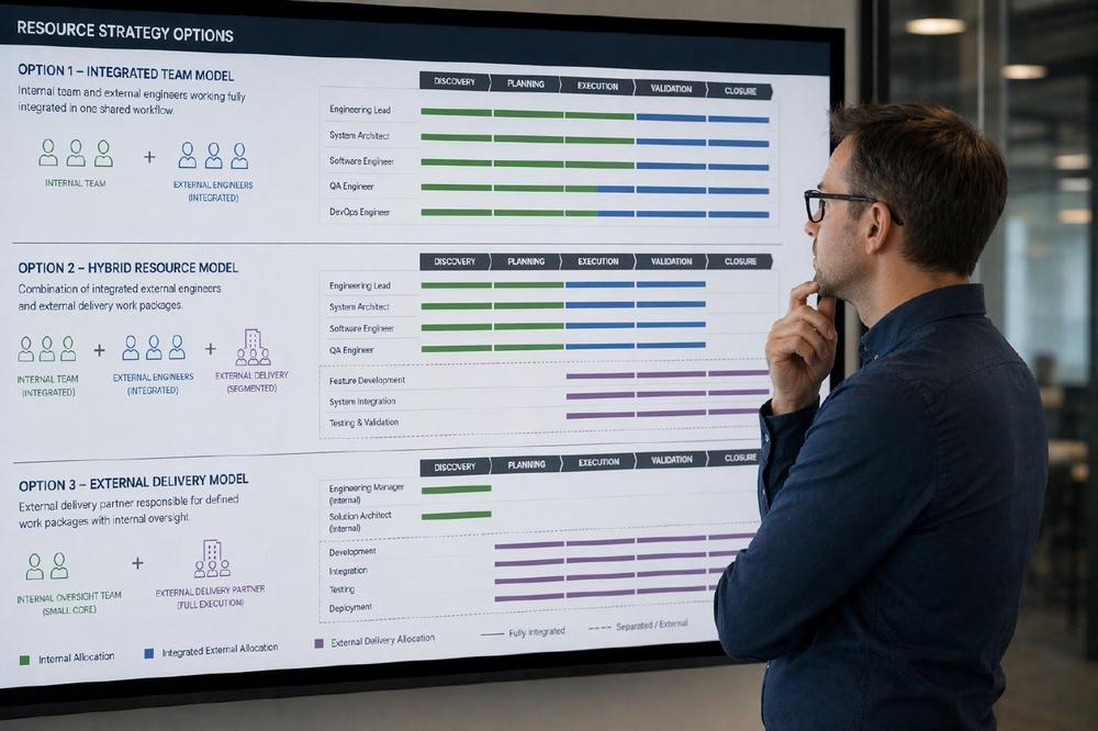 Genau hier liegt jedoch häufig die Herausforderung: Viele Unternehmen treffen diese Entscheidung situativ statt systematisch. ANÜ wird eingesetzt, um Engpässe zu überbrücken – nicht als bewusst gesteuertes Instrument im Projekt- und Kompetenzmanagement.