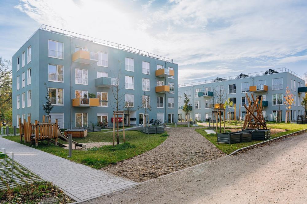 Besonders innovativ ist das Holzhybrid-Modulgebäude in der Siedlung: „Die Klimaveränderungen erfordern ein neues Umweltbewusstsein – auch und vor allem beim Bauen. Darum betreten wir mit dem Pilotprojekt in Grünstahl-Holz-Hybridbauweise bewusst Neuland“, sagt Gabriela Ostermann, Leiterin der BImA Hauptstelle in Berlin. „Als BImA sehen wir uns in einer Vorbildfunktion und gehen davon aus, dass wir anderen Wohnungsunternehmen damit Mut machen, offen für neue, klimafreundliche Wege zu sein.“