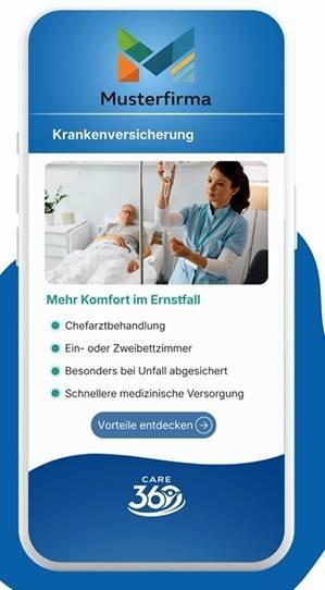 - Abgerundet wird der Zusatzservice Care 360 durch die 24/7 Videosprechstunde und die 24/7 Medizinische Hotline, die Mitarbeitenden und ihren Familien jederzeit zur Verfügung stehen.