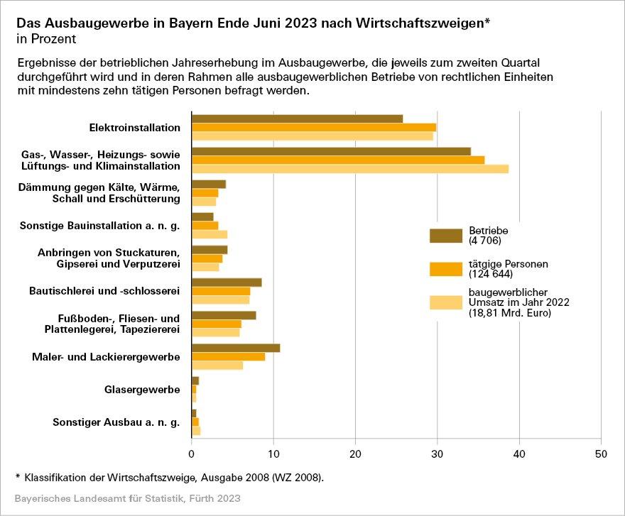 Ausbaugewerbe in Bayern im zweiten Quartal 2023: Umsatzplus von 10,8 Prozent
