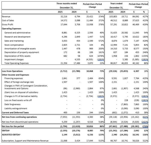 – Rekordumsatzwachstum – HEALWELL erzielte im Geschäftsjahr 2025 einen Rekordjahresumsatz aus fortlaufenden Betrieben in Höhe von ca. 103,8 Millionen Dollar. Dies entspricht einem Anstieg um 427 % gegenüber den 19,7 Millionen Dollar im Geschäftsjahr 2024. Das Unternehmen verzeichnete im Geschäftsjahr 2025 einen IFRS-Nettoverlust aus fortlaufenden Betrieben in Höhe von 39,1 Millionen Dollar, verglichen mit einem Nettoverlust von 24 Millionen Dollar […]