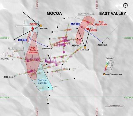– Mocoa beherbergt nun drei verschiedene hochgradige Kerne, die alle in der Tiefe und seitlich offen sind, was ihre Größe und ihren multizentrischen Charakter unterstreicht. MD-050 durchteufte 316 Meter frühen Mikrodiorit-Porphyr mit einem Gehalt von 0,35 % CuÄq* (0,25 % Cu und 0,02 % Mo), einschließlich einer hochgradigen Zone von 145 Metern mit einem Gehalt von 0,60 % […]