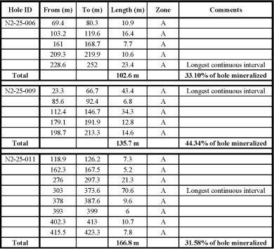 . Highlights: – Die Bohrlöcher N2-25-006, N2-25-009 und N2-25-011, die in der Zone „A“ niedergebracht wurden, durchteuften bedeutende mineralisierte Abschnitte. Das Unternehmen strebt in dieser Zone eine konzeptionelle Tagebauressource von mehreren Millionen Unzen an. Das erste Bohrprogramm des Unternehmens konzentriert sich auf die Bewertung des vertikalen Tiefenbereichs der ersten dreihundert Meter. o N2-25-006: durchteufte 102,6 Meter der anvisierten […]