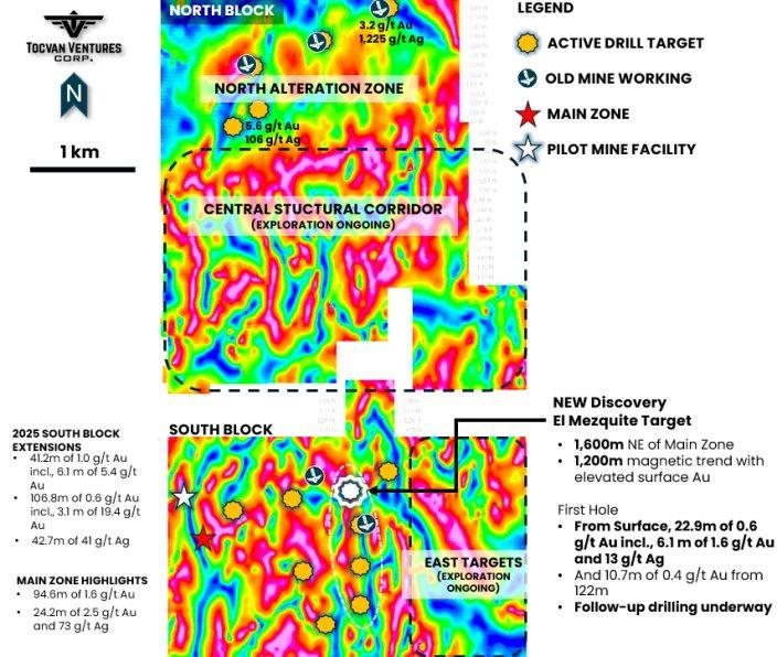 Tocvan entdeckt auf dem South Block bei Gran Pilar eine neue Gold-Silber-Zone in 1.600 Metern Entfernung von der Main Zone