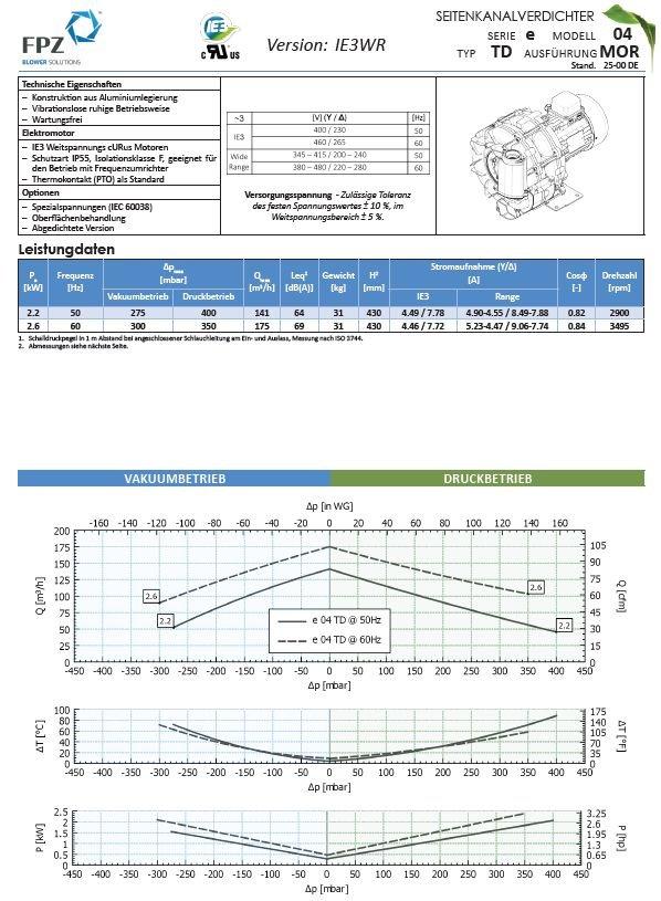 In modernen Produktionsanlagen müssen Materialien häufig schnell, sauber und zuverlässig transportiert werden. Besonders in der Lebensmittelindustrie, Kunststoffverarbeitung oder chemischen Produktion kommen dafür pneumatische Fördersysteme zum Einsatz. Der Seitenkanalverdichter e04TD mit 2,2 kW Leistung liefert den notwendigen Luftstrom, um Pulver, Granulate oder leichte Schüttgüter effizient durch Rohrleitungen zu transportieren. Durch seine robuste Bauweise und den energieeffizienten […]