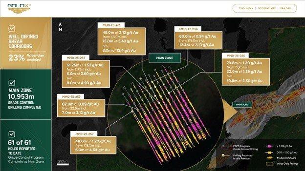 Gold X2 Announces Positive Reconciliation in Main Zone Grade Control Drilling with Intercepts Including 49.0m of 2.13 g/t Au
