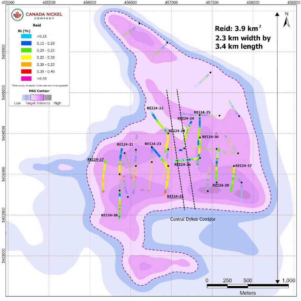Highlights Best Reid interval to date – 661 metres of 0.29% nickel including 100 metres of 0.42% nickel and 40 metres of 0.51% nickel in REI-24-35 All 8 holes targeting Reid Central Core intersected core lengths greater than 620 metres with average grades of 0.21% to 0.29% nickel Canada Nickel Company Inc. ("Canada Nickel" […]