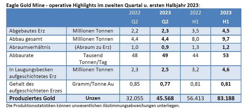 Victoria Gold: operative Highlights der Goldmine Eagle im zweiten Quartal u. ersten Halbjahr 2023